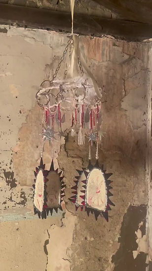 For both Ethereal Maison and Blue hour studio I utilised the same core piece, 'Apprehensive Erotica', a mobile featuring panels depicting moments of intimacy interlaced with gore and horror aesthetics. I wanted to portray the vulnerability that comes through intimacy.